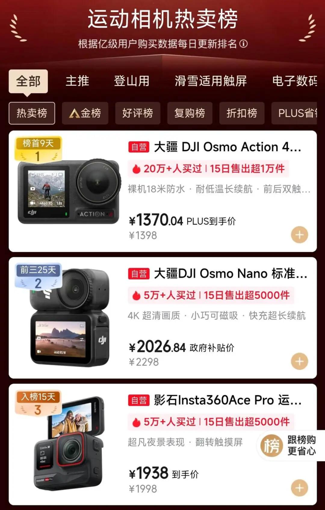 图/京东运动相机热卖榜 来源/京东融中财经截图